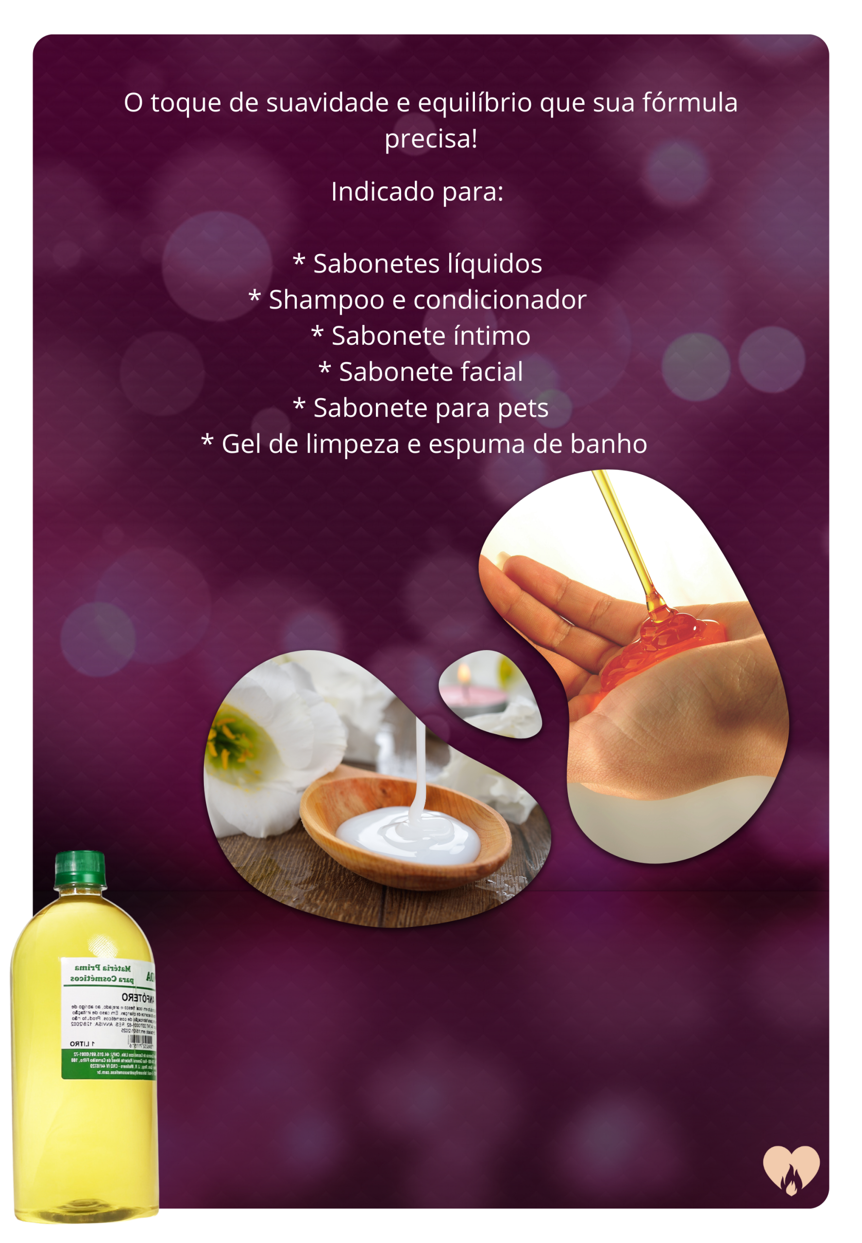 aumenta a espumação sem agredir a pele. É o queridinho de quem quer criar cosméticos artesanais